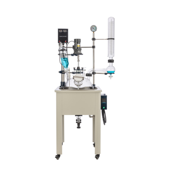 本機(jī)具有電動(dòng)恒速攪拌系統(tǒng)、冷凝、滴加系統(tǒng)、加熱浴鍋。在攪拌物料的同時(shí),浴鍋對(duì)釜內(nèi)物料進(jìn)行加熱,在真空條件下可以提高蒸發(fā)效率(需連接真空裝置),溶媒蒸汽經(jīng)玻璃冷凝盤管時(shí)冷卻成液體(需連接冷卻裝置),可回流到釜內(nèi),也可通過回流彎頭下部閥門進(jìn)行回收。反應(yīng)完畢,物料可從釜底的側(cè)出料口放出。